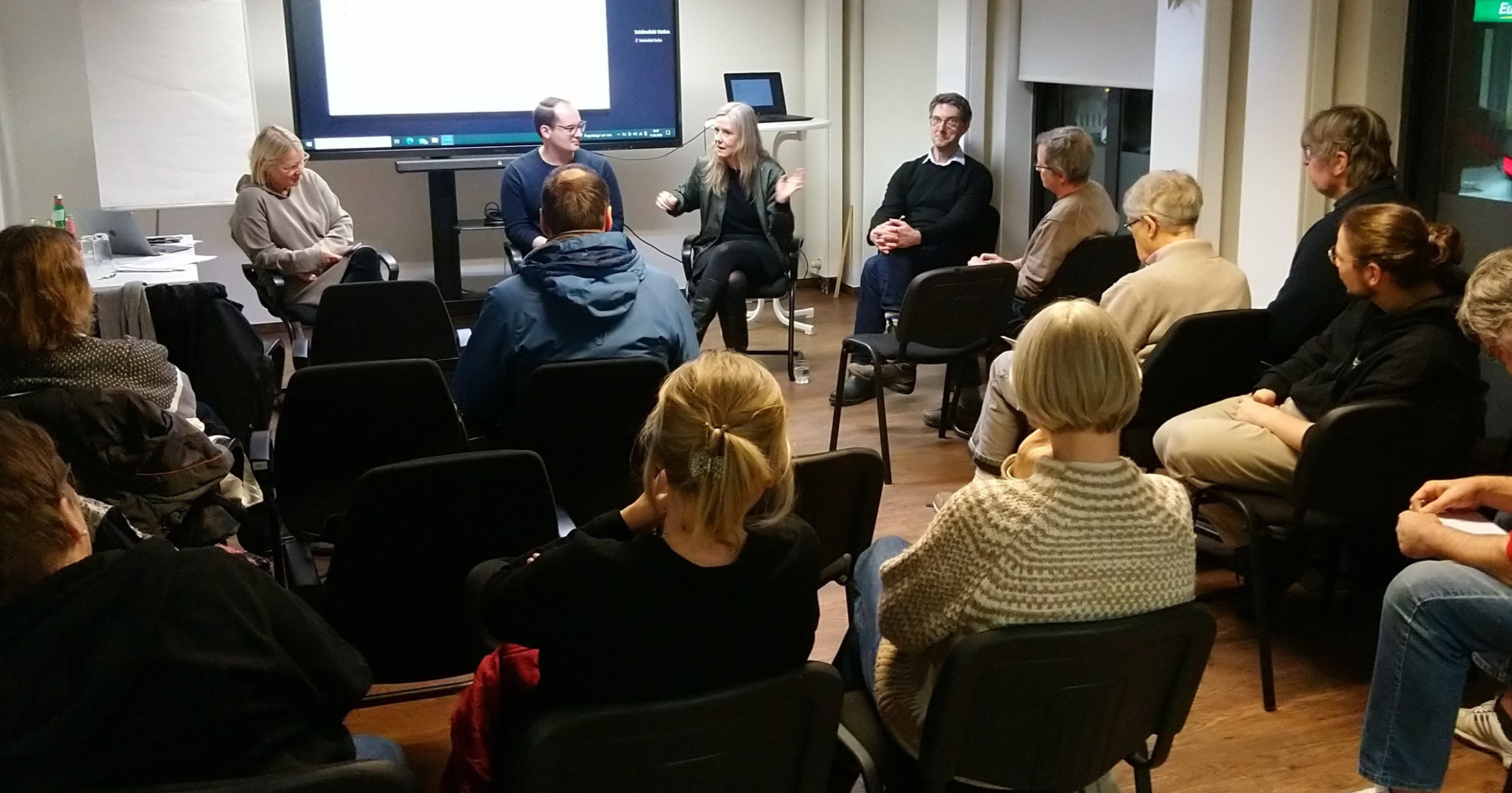 Im Anschluss diskutierten wir gemeinsam mit Kathrin Warnecke (sozialpolitische Sprecherin in der Bürgerschaft), Justin Orbán (Fachsprecher für Soziales der Bezirksfraktion Wandsbek) und rund zwanzig Gästen.